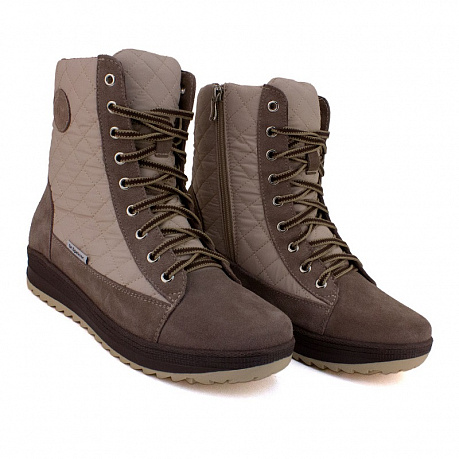 Верх обуви выполнен из натурального велюра и плащевки; подкладка из натуральной шерсти обеспечит тепло и уют ногам. Модель также оснащена нескользящей подошвой для безопасных прогулок в гололед. Съемная ортопедическая стелька с покрытием из натуральной шерсти обеспечивает небольшую поддержку продольного и поперечного сводов стопы; при необходимости ее можно заменить на индивидуально изготовленную.